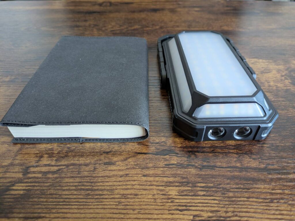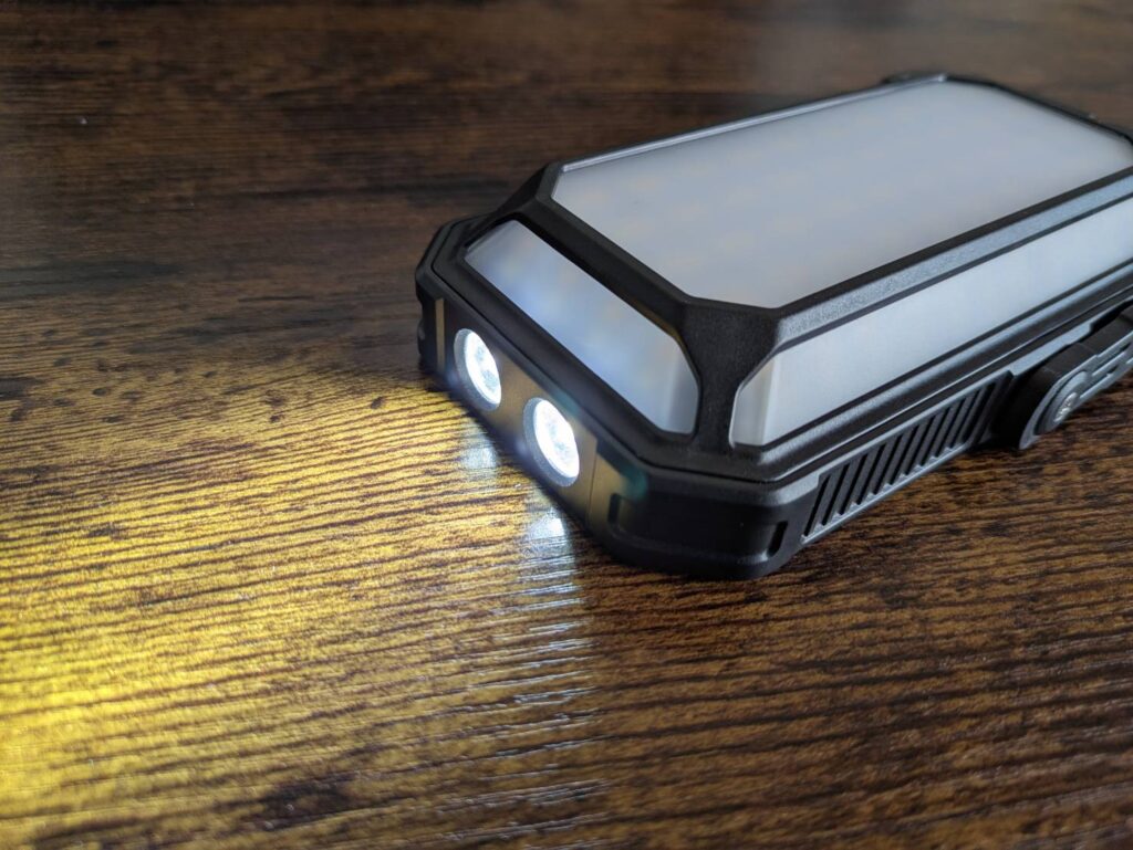 10000mAhバッテリーを搭載しており明るさ最大レベルでも約5、6時間は連続点灯が可能