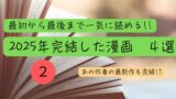 2025年に完結した漫画といっても沢山あるので今回は私も読んでいておすすめだった作品を分けて4作紹介したいと思います。
